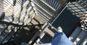 That’s me, standing on a railing overlooking a stair well on the Stadium West Parking garage.